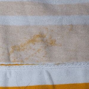 One section of orange fabric is bleeding through to the inside. It is not visible from the outside.