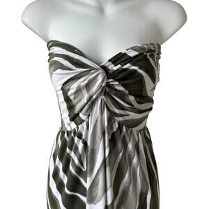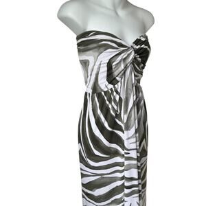 Tommy Bahama Strapless Maxi Dress Women's Large Green White Tropical Zebra Print