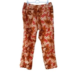 Style up your wardrobe with these Tommy Bahama stretch pants in a fun tropical tea party floral print. Coming in a variety of more neutral tones than most floral patterns (brown, cream, white, and red), they offer a fun summery design along with comfort and stretch. They are made of breathable cotton- and spandex. They are machine washable for easy care. The pants also include practical pockets and come in size 12. Perfect for summer, fall or spring, they embody a beachy, Hawaiian, tropical theme that is both classic and trendy. These pants are a must-have for any coconut girl or cruise wear fashionista! Thanks for looking!