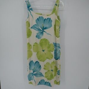 Tommy Bahama Stretch Silk Hawaiian Tropical Dress Med Floral Leaves Vacation