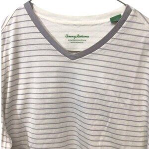 Tommy Bahama Striped Size Medium T-Shirt Grey White Limited Edition