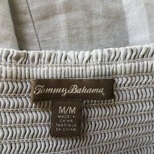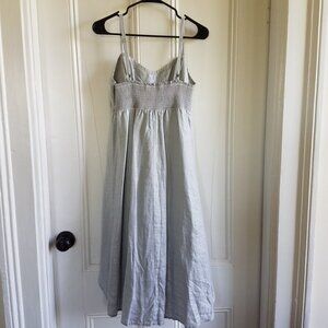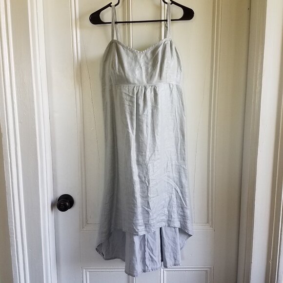 Tommy Bahama Sun Dress~Hi-Lo Midi~Shimmer Silver-Gray Linen~Elastic Fit~M NEW