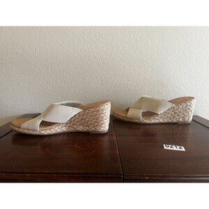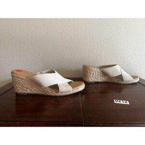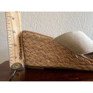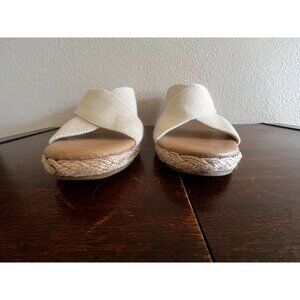 Tommy Bahama Suzette Wedge Sandals Sz 9.5M Slip On Espadrille Heel Beige Fabric