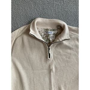 Tommy Bahama Sweater Large 1/4 Zip Waffle Knit Pullover Beige Preppy Beach