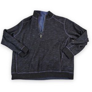 Tommy Bahama Sweater Men 48 " Blue, Gray Flipsider 1/4 Zip Pullover Reversible