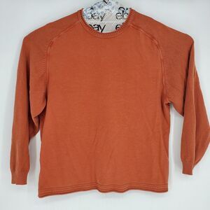 Tommy Bahama Sweater Mens Extra Large Orange Long Sleeve Pullover XL Embroidered. Good pre owned condition has some fade and on the back bottom embroidery it has some loose threads so please see all the pictures before buying.