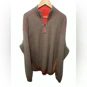 Tommy Bahama Sweater Mens L Orange Heather 1/4 Zip Pullover Reversible Brown