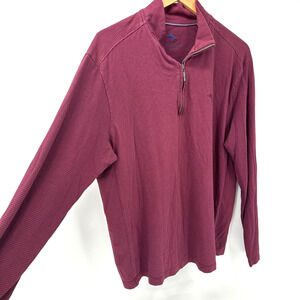 Tommy Bahama Sweater Mens Large 1/4 Zip Pullover Burgundy Striped Classic Knit