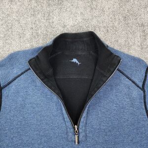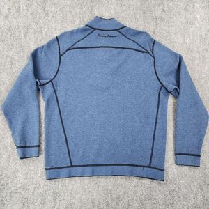 Tommy Bahama Sweater Mens Large Blue Black Flipsider 1/2 Zip Reversible Pullover
