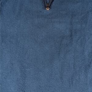 Blue knit with ribbed cuffs, hem, and collar