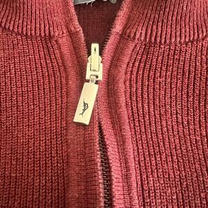 Elevate your casual wardrobe with this Tommy Bahama Sweater. Crafted from soft Pima cotton in a tight-knit fabric, this pullover sweater features a classic mock neck and long sleeves, making it perfect for all casual occasions. The deep purple hue adds a touch of sophistication while the quarter zip closure and reversible feature make it versatile for any outfit. Available in size **Large**, this regular fit sweater is a must-have for any fashion-forward man's wardrobe. Excellent condition. 100% Pima Cotton. No stains/rips/tears/holes/discolorations/snags. No size tag. Please see measurements. **True size fit, Men's Medium.** Kept in smoke/pet free home.