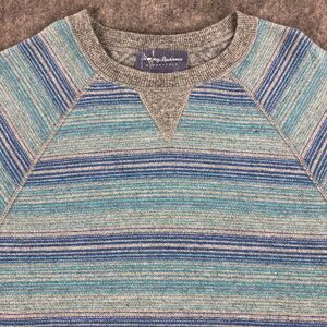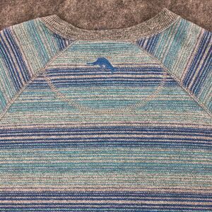 Tommy Bahama Sweater Mens Small Blue Gray Striped Crew Neck 100% Cotton