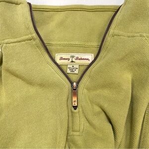 <Features> Really nice Tommy Bahama Quarter Zip Pullover. Copper zipper with the Marlin Embroidery on the left arm/shoulder. Medium weight sweater.