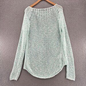Tommy Bahama Sweater Womens Extra Large Blue Crochet Open Knit Linen Blend BeachPullover