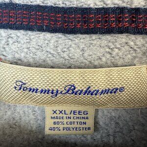 The Tommy Bahama Sweatshirt in men's size XXL is a blue heathered pullover sleepwear featuring a crew neck and long sleeves. Made from a blend of polyester and cotton fleece, this lightweight sweatshirt is perfect for the winter, fall, and spring seasons. The Tommy Bahama logo accents add a touch of outdoor and classic style to this comfortable and machine washable garment. Perfect for men looking for a soft and stylish addition to their sleepwear collection.