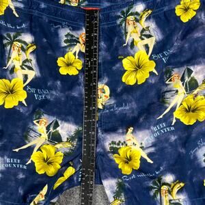 Tommy Bahama Swim Trunks Mens Size L Blue Yellow Floral Retro Hawaiian Print