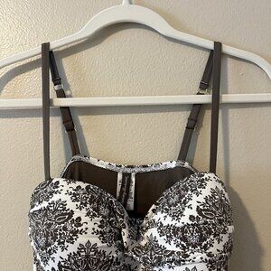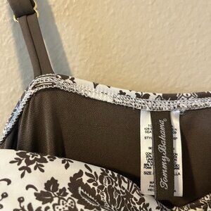 Tommy Bahama Swimsuit One Piece Brown M Dress Ruffle Classic 50s Inspired Twist