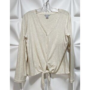 Tommy Bahama Sz S Heathered Sand Beige Tie Front Knot Button Up Top V Neck Tee