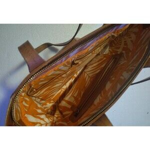 Tommy Bahama Tan Leather Canvas Tote Bag Tropical Print Lining