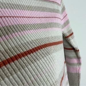 Tommy Bahama Tan Pink Sparkle Stripe Turtle Neck Sweater 5