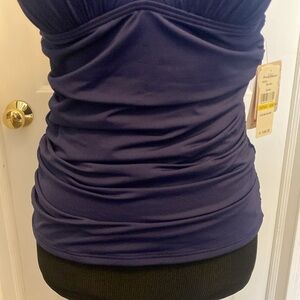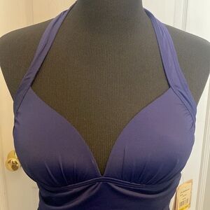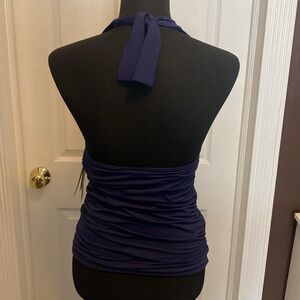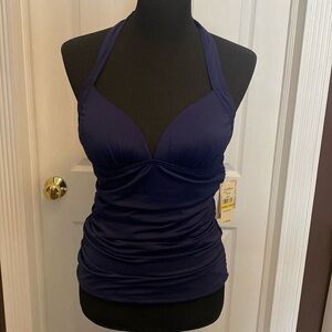 Tommy Bahama women’s Halter Tankini Swim Top Ruched Tummy Control Navy Blue sz M NWOT