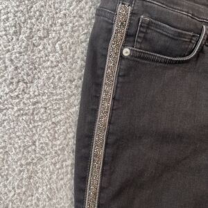 High Rise Ankle Cut Black Wash Jeans with Silver Beading down the sides