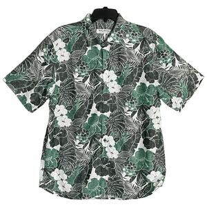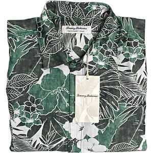 This listing is for a new with tags Tommy Bahama "The Sport Coconut Point" Island Zone Men's Large Shirt in a Floral Viridian Pine Print. Short Sleeve, Spread Collar, Full Button Front. 77% Tencel, 23% Coolmax Polyester, Machine Washable.