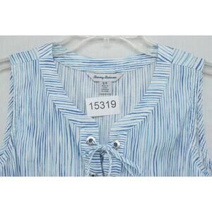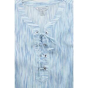 Tommy Bahama Top Beachy Women Small Blue Sleeveless Linen Lace Up Shirt Stripes