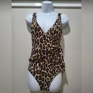 Tommy Bahama Tummy Control Swimsuit Tropi Cat Wrap One Piece NWT size 6 leopard