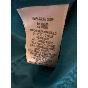 Tags-Silk shirt, turquoise blouse, Tommy Bahama shirt, collared shirt, button-up shirt, roll-tab sleeves, dressy shirt, medium size, women's top, lightweight top, breathable fabric, chest pockets, casual wear