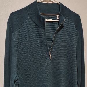 Tommy Bahama Turquoise Sweater Mens Large Half Zip Grandpa New Condition