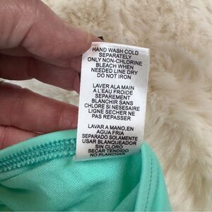 This bathing suite has never been worn. It still has protective lining. In my opinion, it fits a little small.