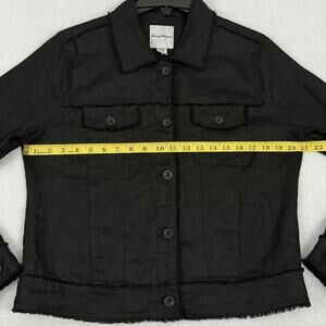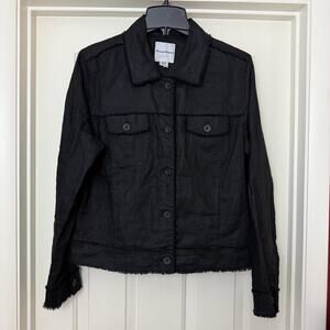 Tommy Bahama Two Palms Linen Raw Edge Jacket Womens Medium Black Raw Hem Trucker