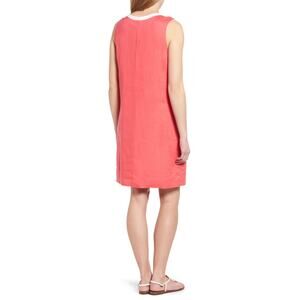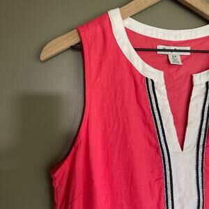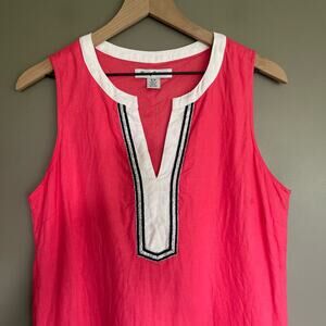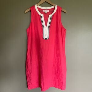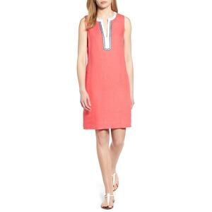 Tommy Bahama Two Palms Split Neck Linen Shift Dress Size Small Pink White Beachy