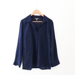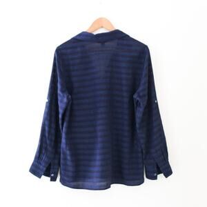 Tommy Bahama Two Toned Striped Button Down Semi-Sheer Top, Size Medium