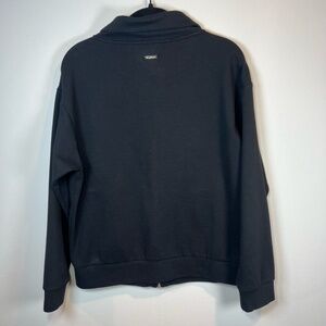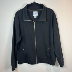 Tommy Bahama Jacket Black Full Zip Sweatshirt Black Gold Colored Zipper Pineapple Zipper Pull Ribbed Texture Stretch Mock Neck Front Snap Pockets