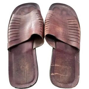 Tommy Bahama Vero Cuoio Brown Leather Slip On Slide Sandals Size 12