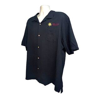 Tommy Bahama Vintage Black Silk Hawaiian Button Up Shirt 2XL Pocket Embroidered
