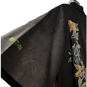 Tommy Bahama Vintage Gray Floral Embossed Silk Button Up Camp Shirt XL Pocket