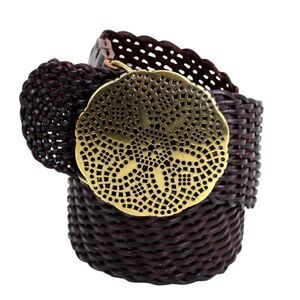 WOVEN BROWN REAL LEATHER DRESS CORSET WOMEN'S BELT