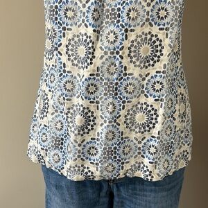 Tommy Bahama White Blue Geometric Halter Linen Top Sleeveless Top size S