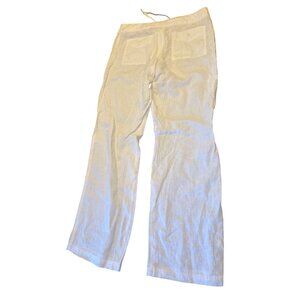 Tommy Bahama White Linen Loose-Fit Womens Pants Drawstring Waist