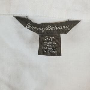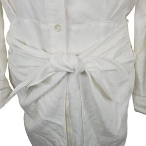 Elegant white midi dress by Tommy Bahama. Features a classic collar and button-down front. Includes a stylish waist tie.
