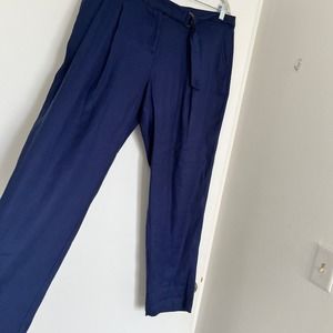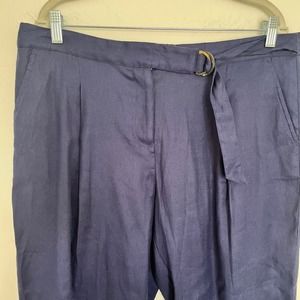 Tommy Bahama Willa Stretch-Linen Pants Navy Blue Trouser Straight Leg 12 Belted. Like new condition. Refer to images for measurements. Pants can be cuffed.