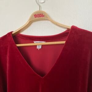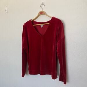 Tommy Bahama Wine Red Velour Velvet Long Sleeve V-Neck Top Soft Comfy Holiday Women XL Loose Fit