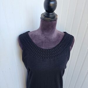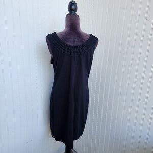 Tommy Bahama Women Black Embroidered Neck Sleeveless Dress Cotton Modal Stretc M