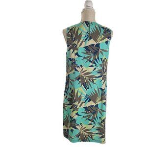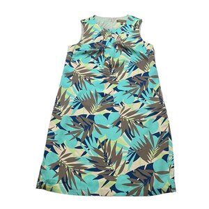 Tommy Bahama Women Blue 100% Silk Hawaiian Palm Leaves Floral Sheath Dress Sz 8