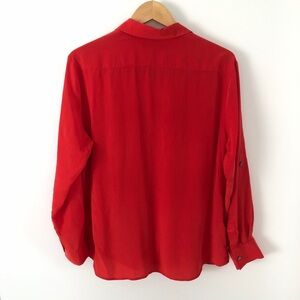 Tommy Bahama Women Long Sleeve Roll Tab 100% Silk Button Up Red Top L Career