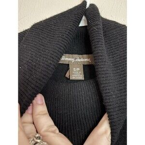 Tommy Bahama Women S Black Mesh Knit Sleeveless Top Turtle Neck Wool Cashmere