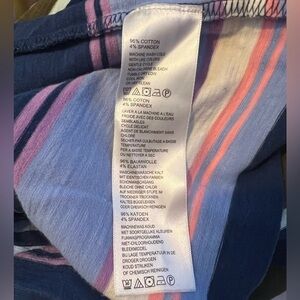 96% cotton 4% spandex, machine wash, 1/3 sleeves, purple, pink, navy, Tommy Bahama Women Small Petite Shore Stripe Scoop Neck T Shirt Stretch Dress